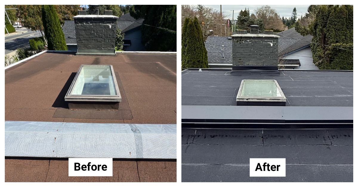 The main challenge was ensuring the new roof had the proper slope to prevent future ponding and water damage. Torch-on roofing requires precision and workmanship, especially when correcting drainage issues. Lynne wanted the job done right the first time—with quality materials and expert installation.